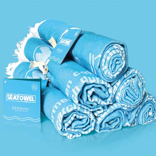 So können auch Sie direkt zu sauberen Meeren beitragen: Dieses Tuch besteht zu 40% aus Kunststoffen, die auf den Ozeanen abgefischt werden. Zusammen mit recycelter Baumwolle entsteht so ein wunderschönes, 100% nachhaltiges Produkt! Und das mit individuell gewebtem Design allover und sogar in Sonderfarbe.